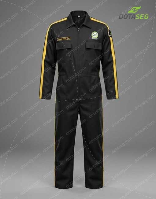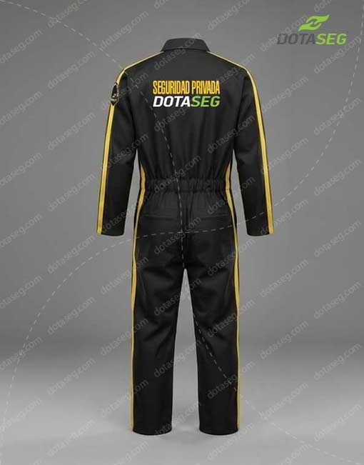 Con ribetes laterales de 2 cm de ancho, ojaletes porta placa, 4 bolsillos delanteros, 2 traseros, bordado en espalda, letras amarillas. (opcional: placa bordada frente izquiedo y escudo bordado manga izquierda).